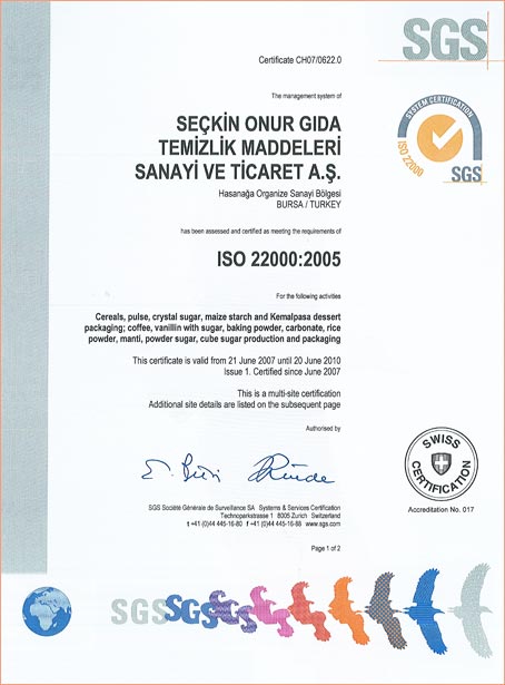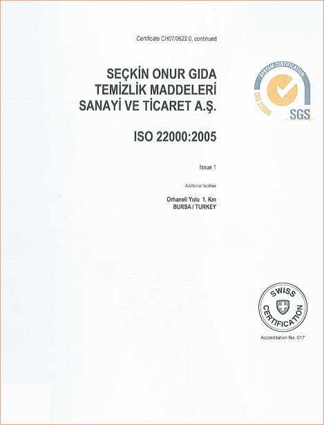 1 Eylül 2005’te yayınlanan ISO 22000 Gıda Güvenliği Yönetim